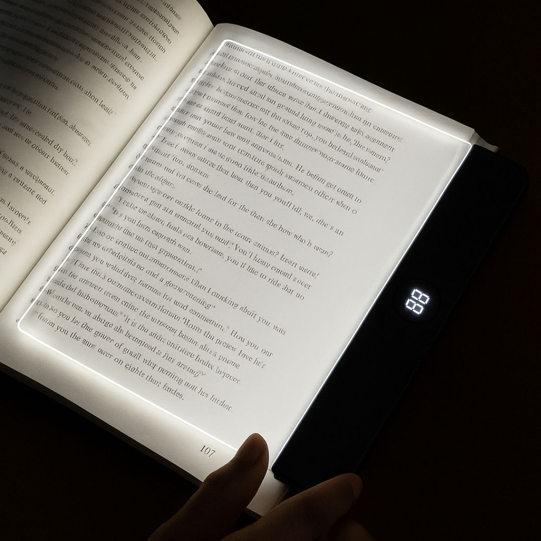GlowRead™ est la nouvelle lampe LED ultra-plate qui offre un éclairage propre, uniforme et sans reflet, parfaite pour la lecture nocturne, les trajets, les chambres d’enfant ou le télétravail.